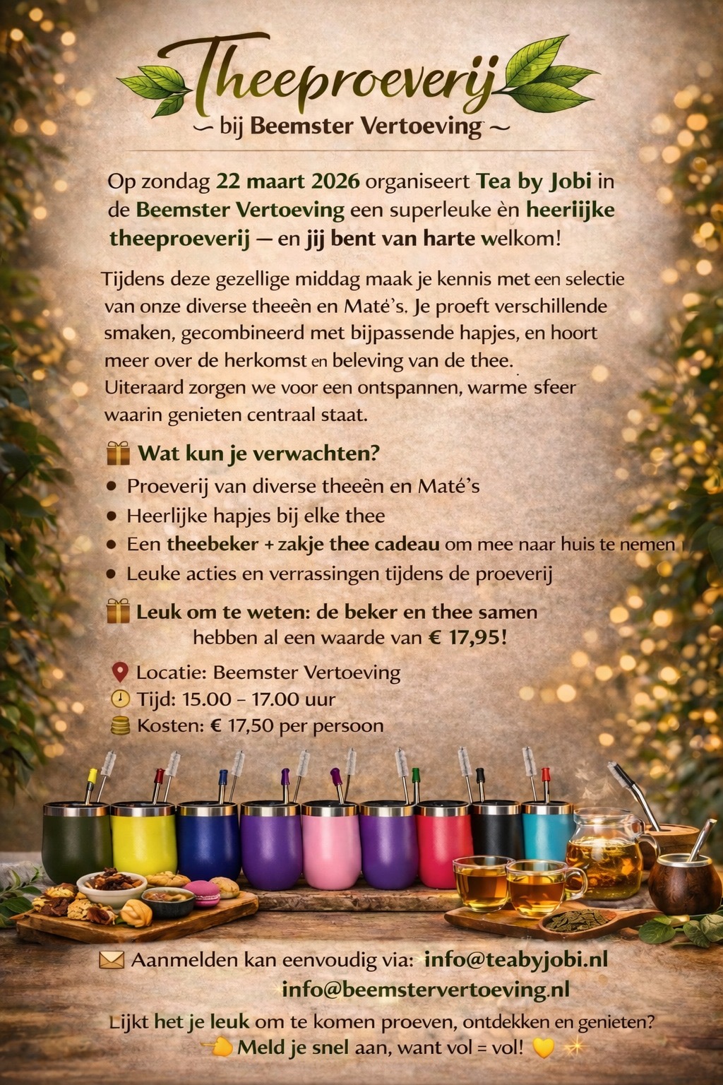 Het is zover! Vaak krijgen we de vraag of we een keer een theeproeverij willen organiseren, dus bij deze:)