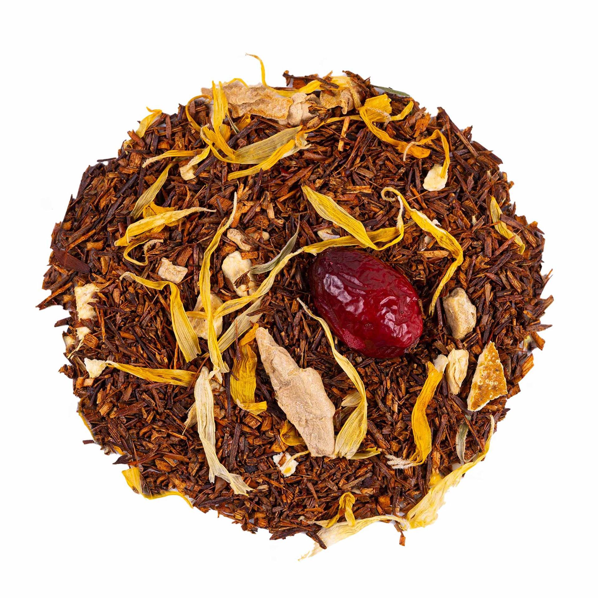 De subtiele citrusaccenten van sinaasappel en het verwarmende karakter van gember maken elke slok levendig, stimulerend en troostend tegelijk. Een geurige en krachtige thee, ideaal om op te laden, even tot jezelf te komen of te genieten van een moment vol warmte en energie.