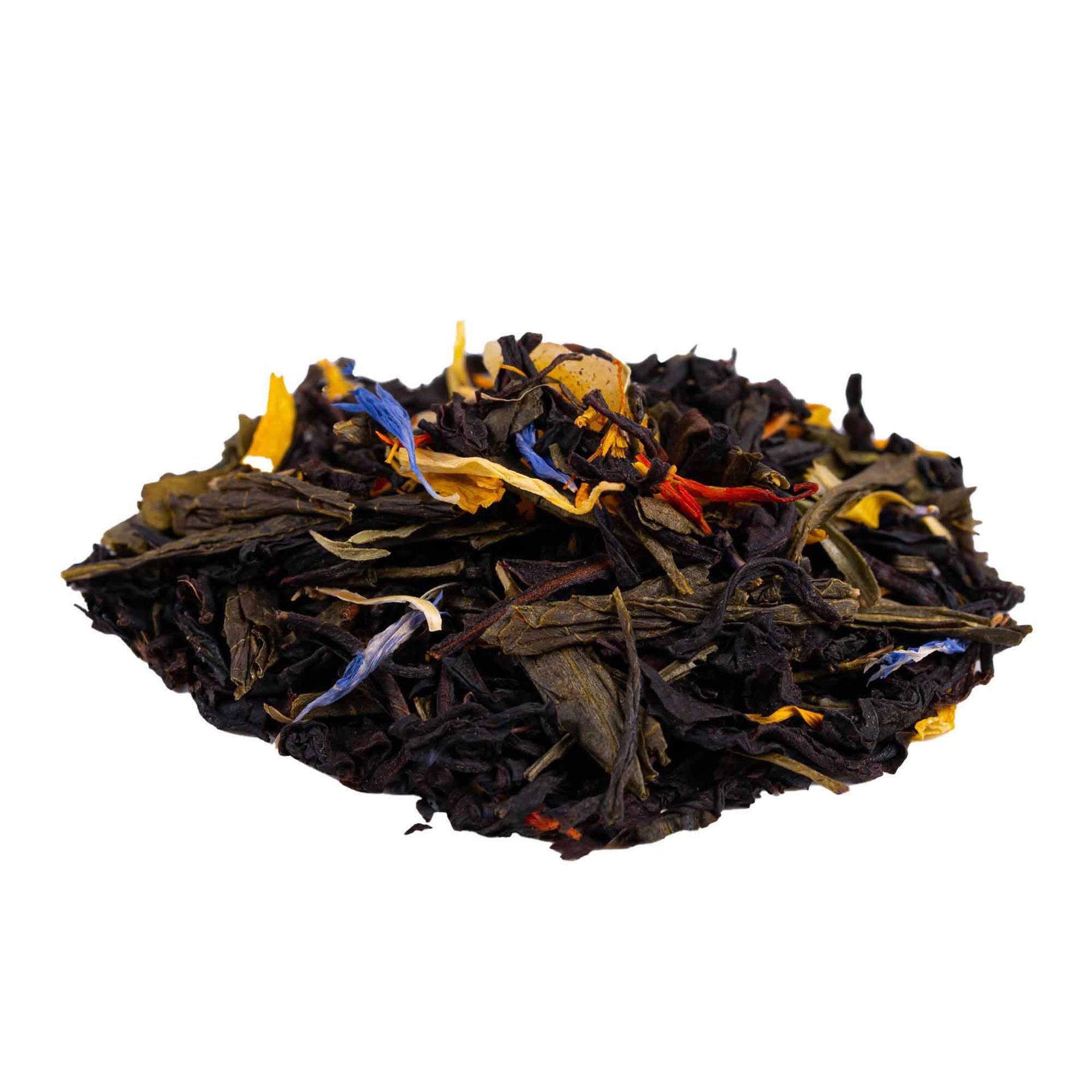 De tropische mangostukjes zorgen voor een sappige, fruitige zoetheid, terwijl de fluweelzachte vanille een warme, ronde smaak toevoegt die de blend perfect afrondt. Subtiele bloemaccenten van korenbloem, goudsbloem en saffloer geven deze thee een kleurrijke, vrolijke uitstraling—alsof je een tropische dans in een kopje schenkt.