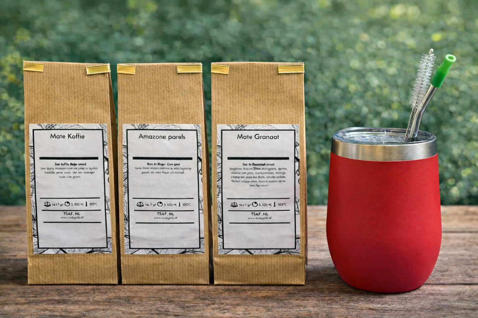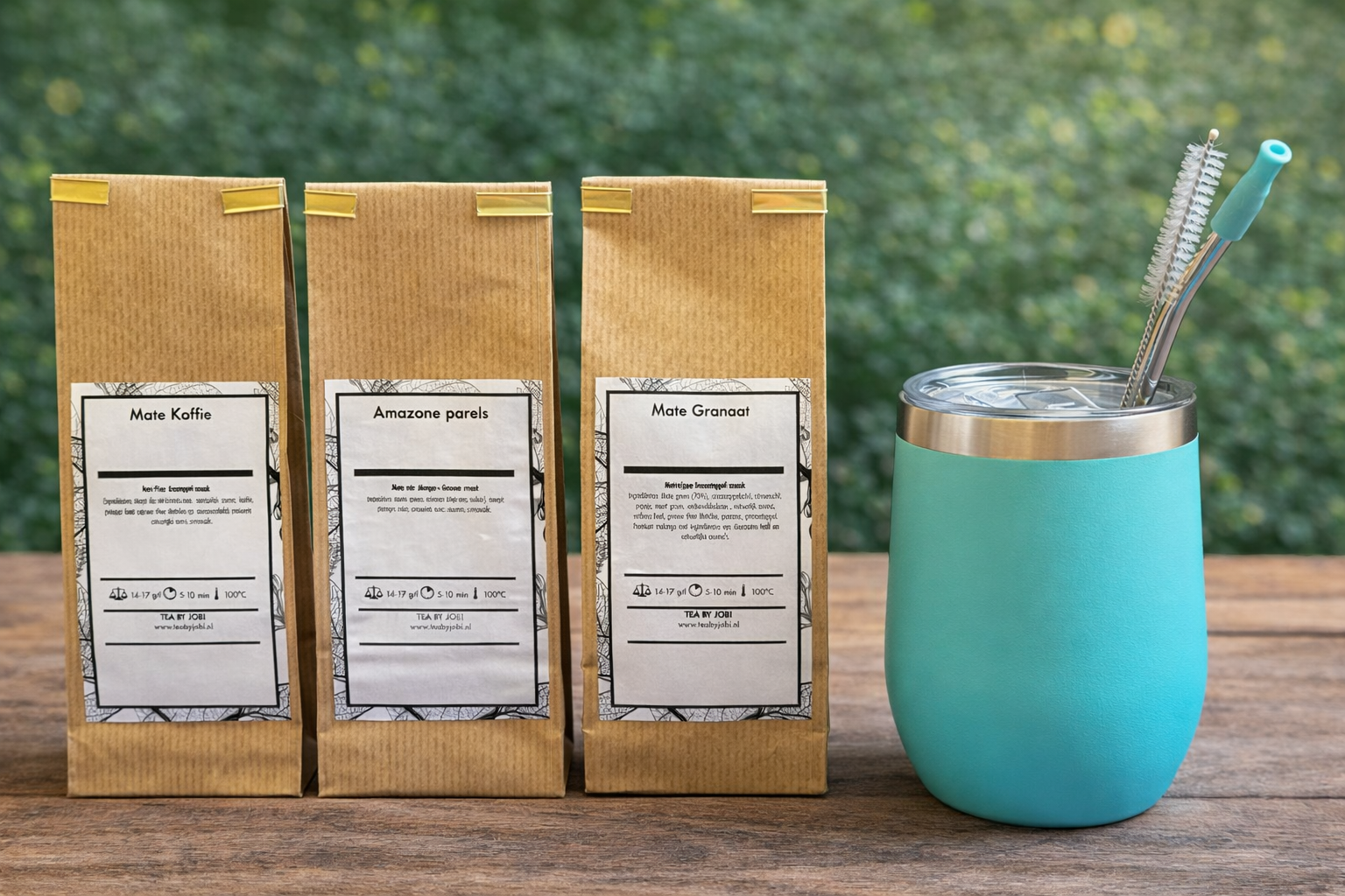 Verwen jezelf met ons exclusieve "Santé met Mate" pakket, een perfecte kennismaking met drie verrukkelijke smaken: Mate Grenada, Mate Koffie, en Amazonian Pearl (elk 50g). Of je nu op zoek bent naar de verfrissende smaak van Granaatappel maté, de rijke aroma's van koffie, of de exotische allure van Amazonian Pearl, dit pakket biedt voor elk wat wils. Inclusief een stijlvolle kalebas en bombilla, zodat je direct kunt beginnen met genieten.